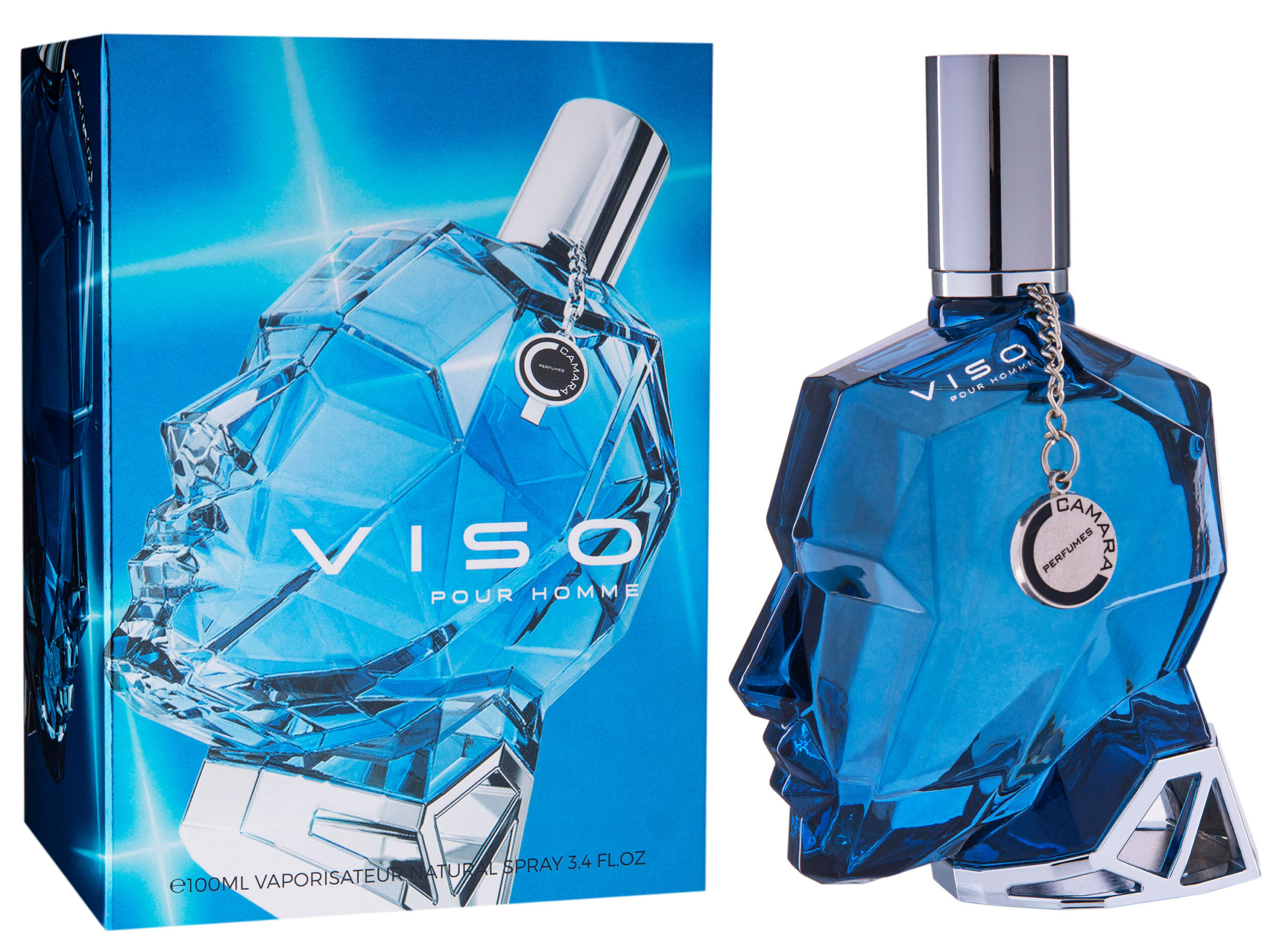 Стильний скляний флакон парфуму Viso Camara викликає захват. Реалістична чоловіча голова немов би зібрана зі шматочків синього скла з рифленими гранями різної форми. Флакон відмінно вписується в концепцію сучасного мистецтва. Він виконаний в дусі наймодніших тенденцій нинішнього часу. Аромат доповнить образ тих чоловіків, які завжди на крок попереду – вибирають для себе тільки найкраще, стежать за тим, щоб не відставати від прогресу, що спрямовує людство рухатися вперед. Для модних, стильних, енергійних і вимогливих, в першу чергу – до себе. Свіжі цитрусові ноти доповнені зеленими нотами і солодкістю загадкового сандалу. Шлейф благородно манить шкіряними акордами і димним ветивером. Такий парфум не соромно піднести в якості подарунка. Він точно викличе захоплення і радість.